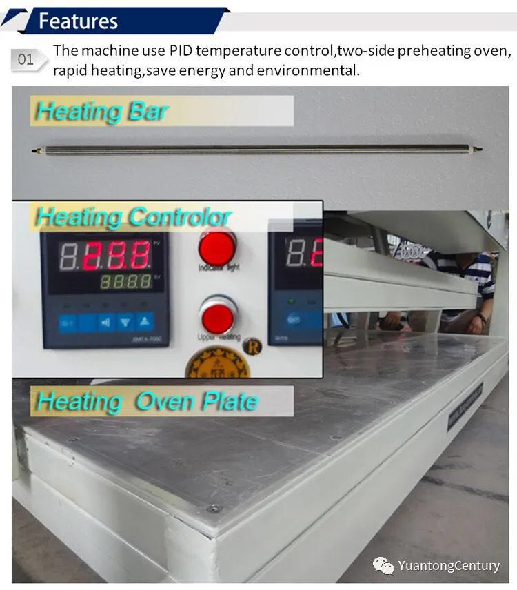 5.加熱板使用氧化鋁板,平整度、光潔度好,加熱板氣動(dòng)開(kāi)啟高效、快捷,降低勞動(dòng)強(qiáng)度